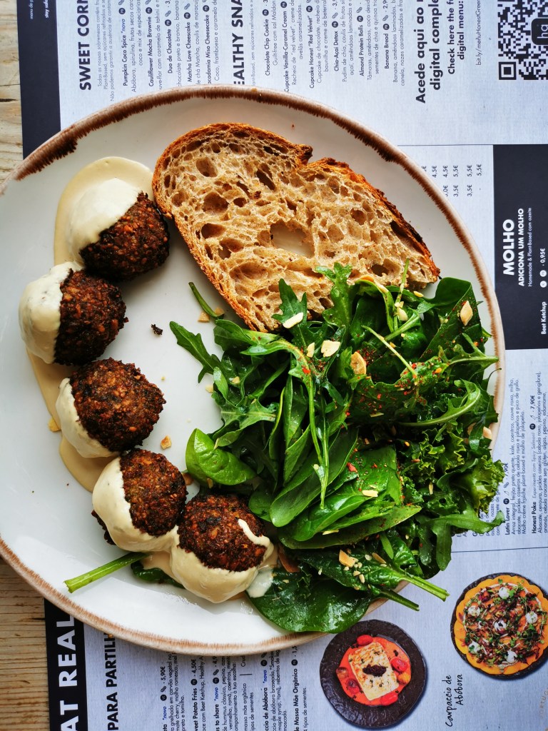 Tutti i piatti sono pensati come occasioni di condivisione, e noi abbiamo assaggiato il Baba Ganoush, il piatto di falafel e hummus e le patate fritte con maionese veg.